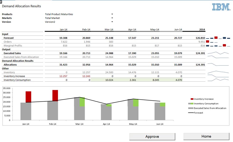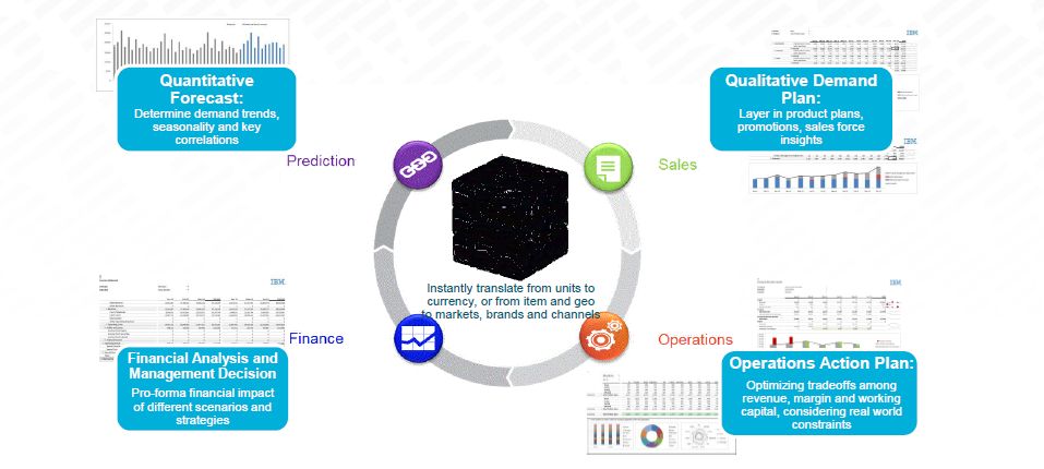 Die integrierte Absatz- und Produktionsplanung kombiniert die führenden IBM Lösungen zu einer Plattform und verwendet moderne Simulations-, Statistik- und Data-Mining Technologien, u.a. IBM SPSS und IBM CPLEX, um aussagekräftige und verlässliche Planungs- und Prognoseergebnisse auf aggregierter und detaillierter Ebene zu gewährleisten.